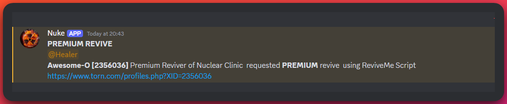 All revive requests are centralized and posted in the Nuclear Central Discord server. You can receive notifications for these requests by turning on the Healer role in the #medical-alerts-on-off channel.